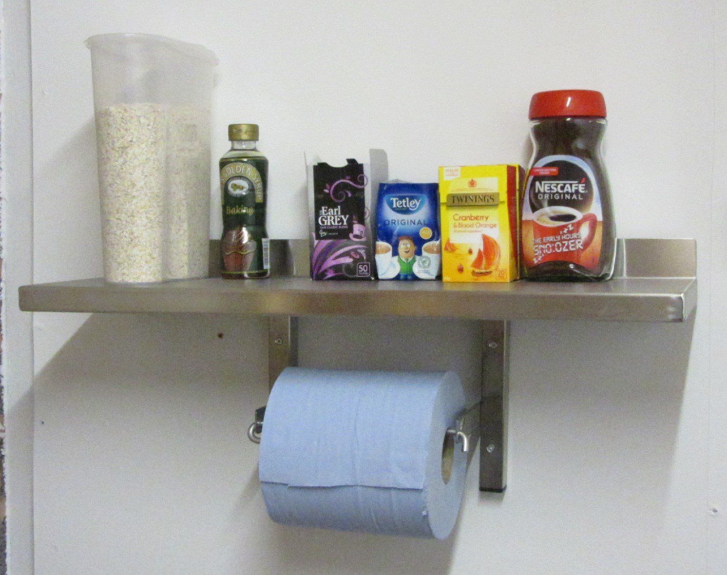 Etagère murale en inox avec dérouleur de papier d'essuyage intégré